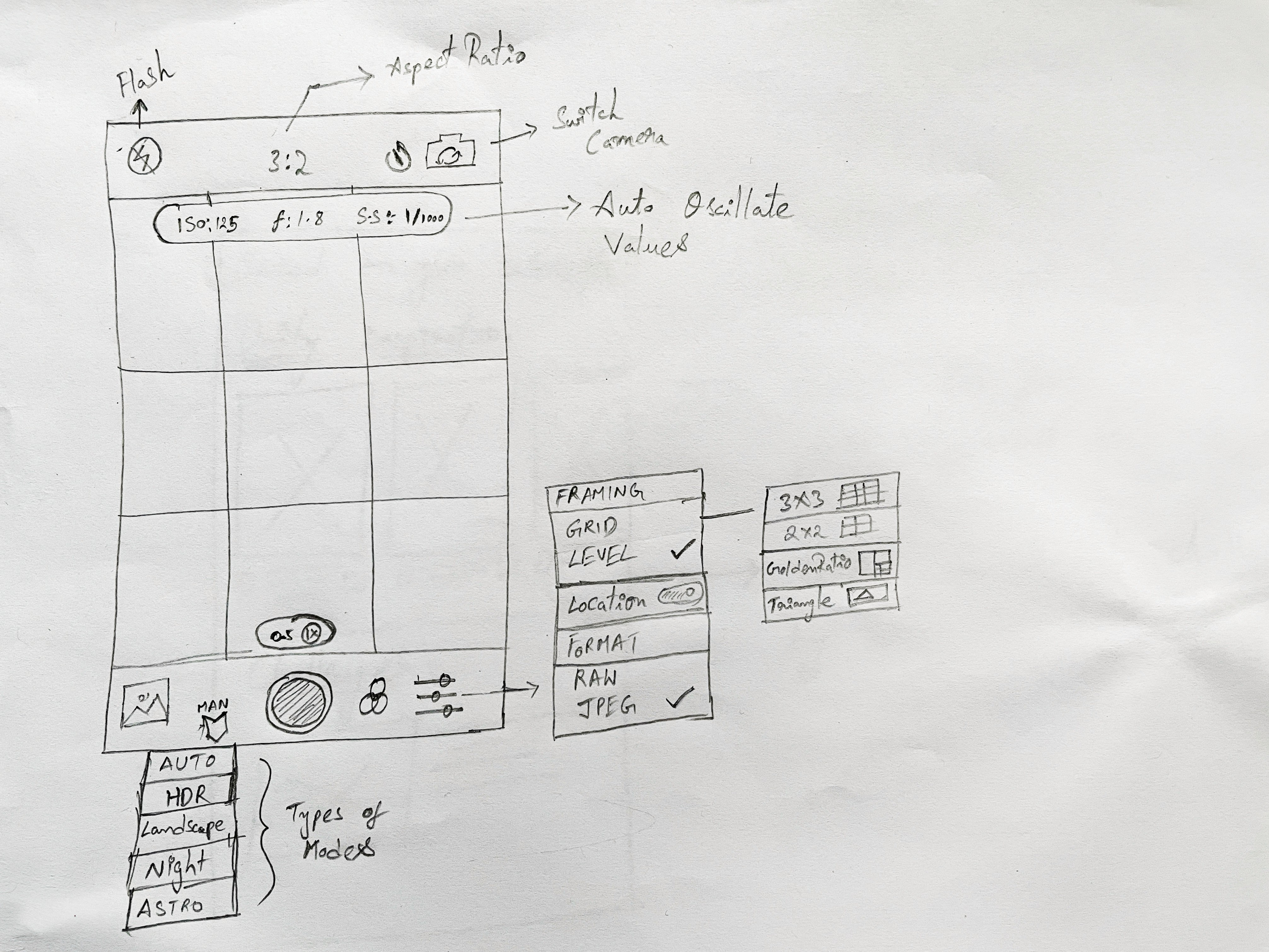 Native apps like Apple/Google Camera hide useful features (grids, exposure adjustments) deep in settings, making them inaccessible for quick, everyday use.